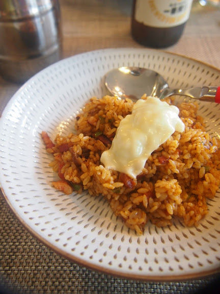ジャンバラヤにチーズをのせて少しレンジでチンして食べてたので