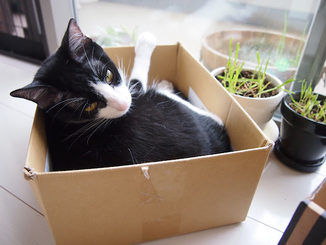 最近は窓際に置いたダンボールがお気に入り。。