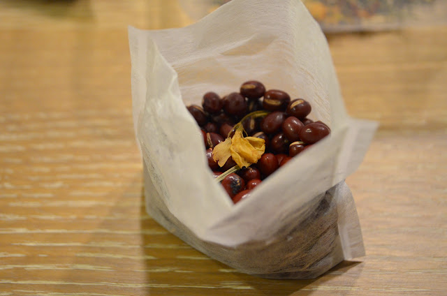 最初は、お茶のパックにあずきとハーブを入れてたんだけど、